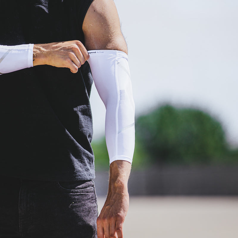 The sleeves feature a rubberized inner edge to prevent slipping during activities, ensuring they stay securely in place. Maximize your workout performance and minimize the risk of injuries.