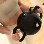 What's unique about this kettlebell is that it can be adjusted according to your needs. By adding water, you increase the weight, and by emptying water, you decrease the kettlebell's weight. Unlike regular kettlebells, it also features dual carrying handles, allowing for many more exercise variations!
