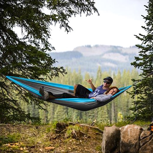 Super-comfortable hammock that holds two people lying beside each other! Made of reinforced nylon to hold over 200 kg at the same time! Folded, it takes almost no place at all, which makes it perfect for taking everything from camping, boat trips, the beach or the forest hike!