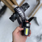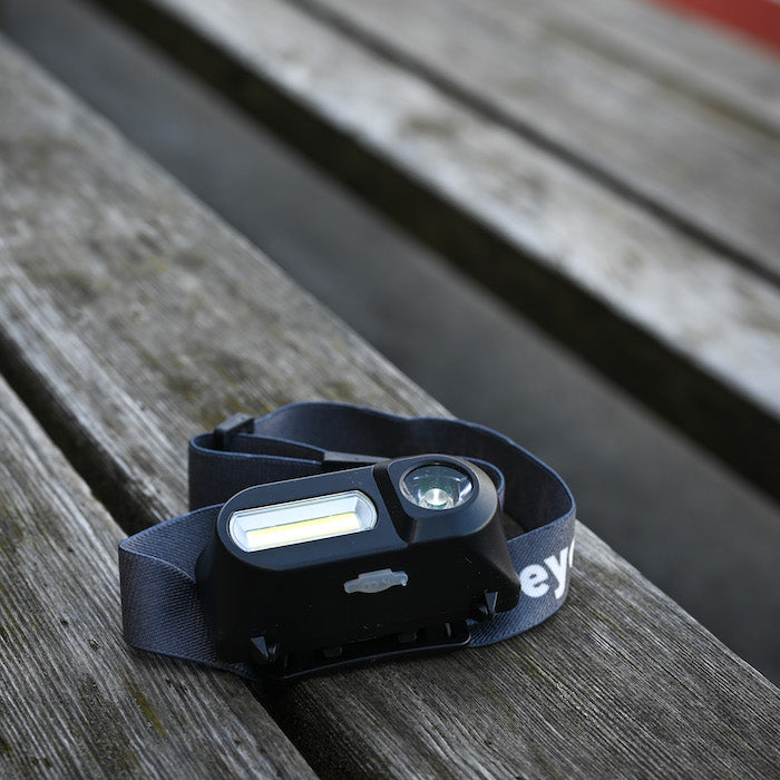 Rechargeable headlamp with 6 different settings and 2 different LED lamps, one lamp with a wider light image which is perfect for work at close range, the other lamp lights up at a slightly longer distance, which is optimal for running, cycling or walking. The LED lamp can be angled up to 45 degrees to get the perfect light image when you are out running or walking in the woods.